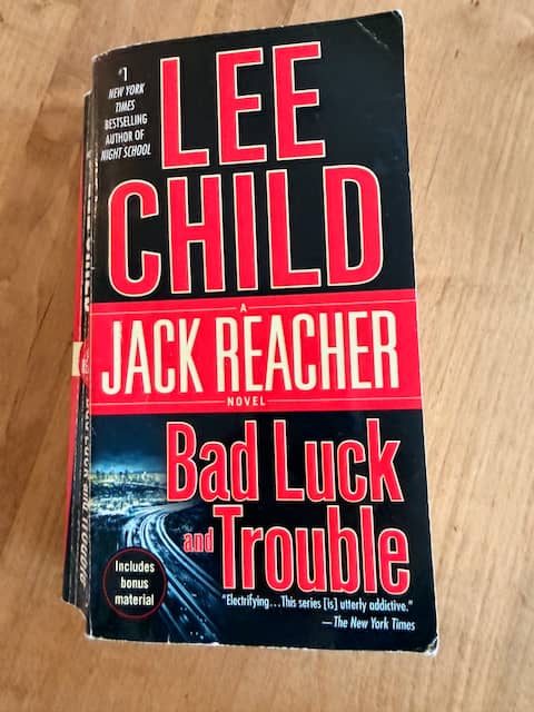Jack Reacher Last week I wandered up the street to the Little Sharing Library seeking inspiration. I craved fiction, but more than that, something light. My eyes lit up when I saw a vigorously used Lee Child paperback, an early Jack Reacher novel. I enjoyed watching the Reacher series on Amazon, so I thought this book might hit the spot. It did. I tore through it in about three sittings. I'd forgotten how satisfying light reading can be. No notetaking. Nothing to learn. Just pure entertainment.